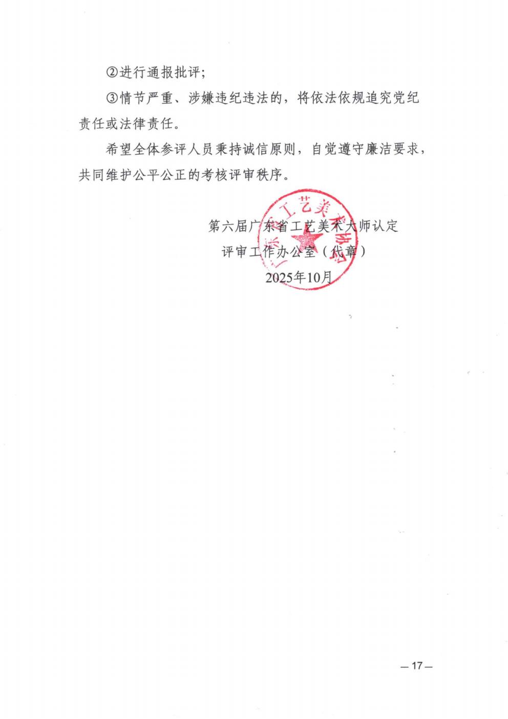 关于开展第六届广东省工艺美术大师认定现场技艺考核的通知