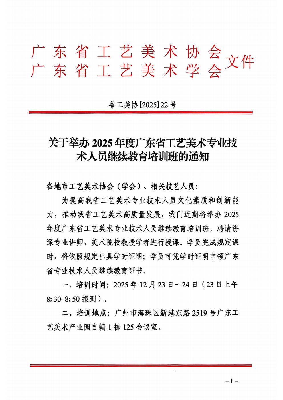 信息详情-关于举办2025年度广东省工艺美术专业技术人员继续教育培训班的通知